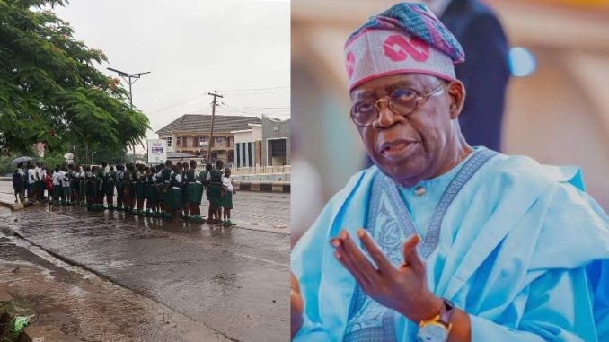President Bola Tinubu’s visit to Benue State on Tuesday has triggered a wave of public anger and condemnation following allegations that schoolchildren were compelled to line the streets under heavy rain to welcome him.