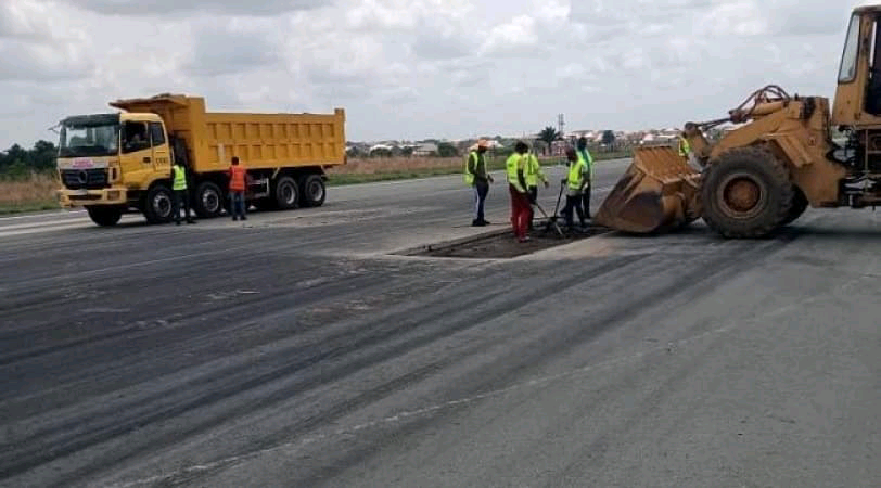 Repair works on the runway of the Akanu Ibiam International Airport Enugu.