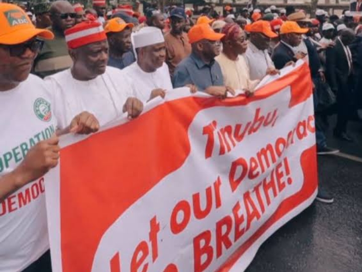 Obi, Atiku, Kwankwaso lead mass protest demanding “Tinubu Let Our Democracy Breathe”