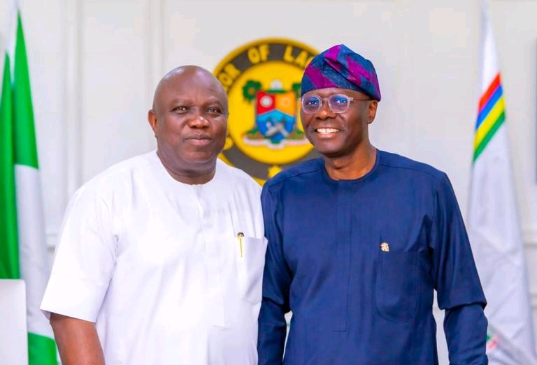Babajide Sanwo-Olu, governor of Lago, on Monday hosted Akinwunmi Ambode, his predecessor, at the government house in Alausa, Ikeja.